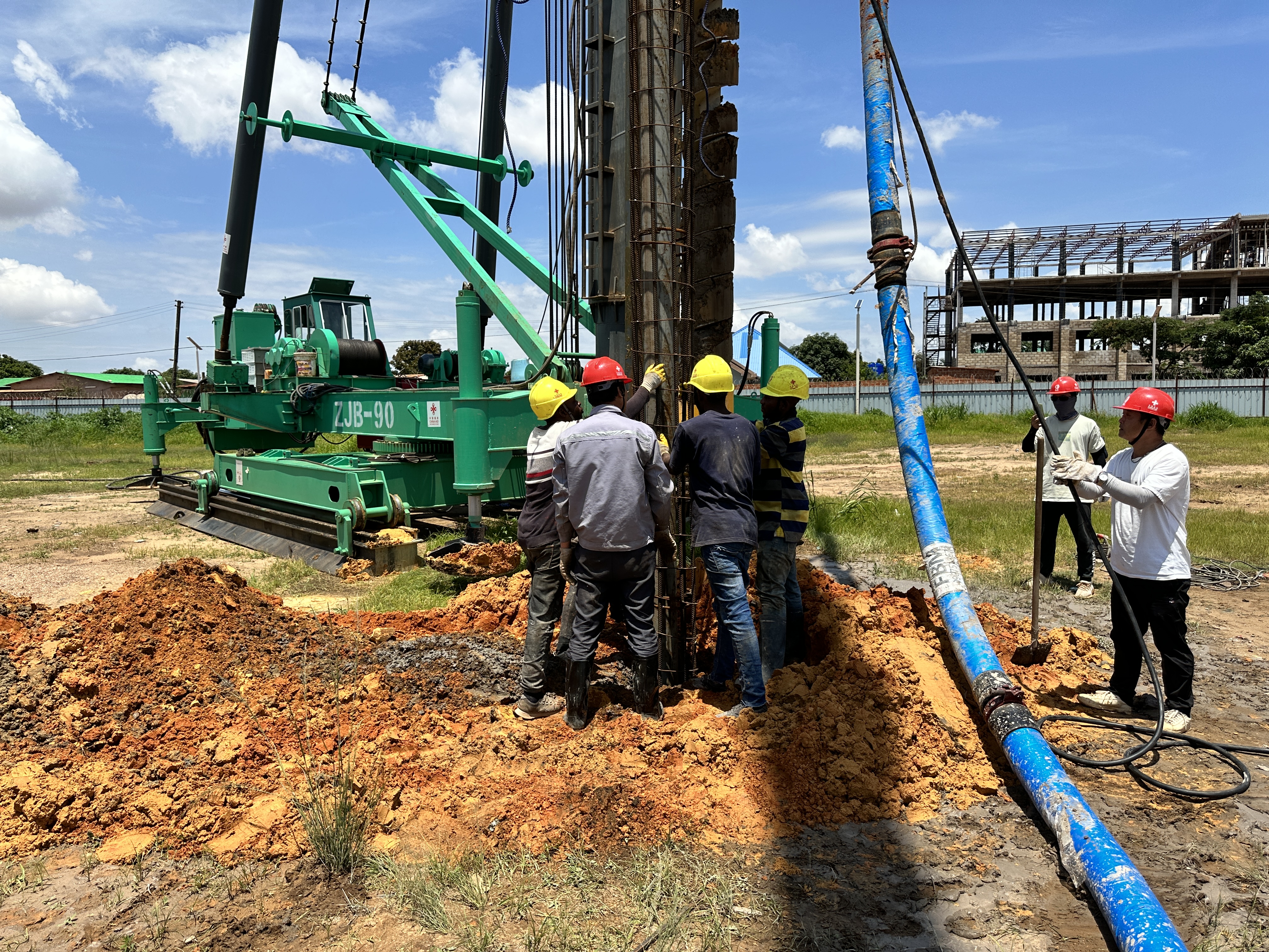 援刚果(金)职业技术培训中心项目是落实中非合作论坛北京峰会成果,“八大行动”中能力建设的载体。项目建成后,对提高当地职业培训水平、带动当地就业、更好地建设国家职业培训体系具有重要作用。面对开工前期的重重困难,项目团队紧密团结,迎难而上,抢抓开局,协调人员、机具、材料有序入场施工。目前项目已顺利进入工程桩施工阶段,在保证质量至上、安全第一的前提下,项目全体成员铆足干劲,加班加点抢进度。