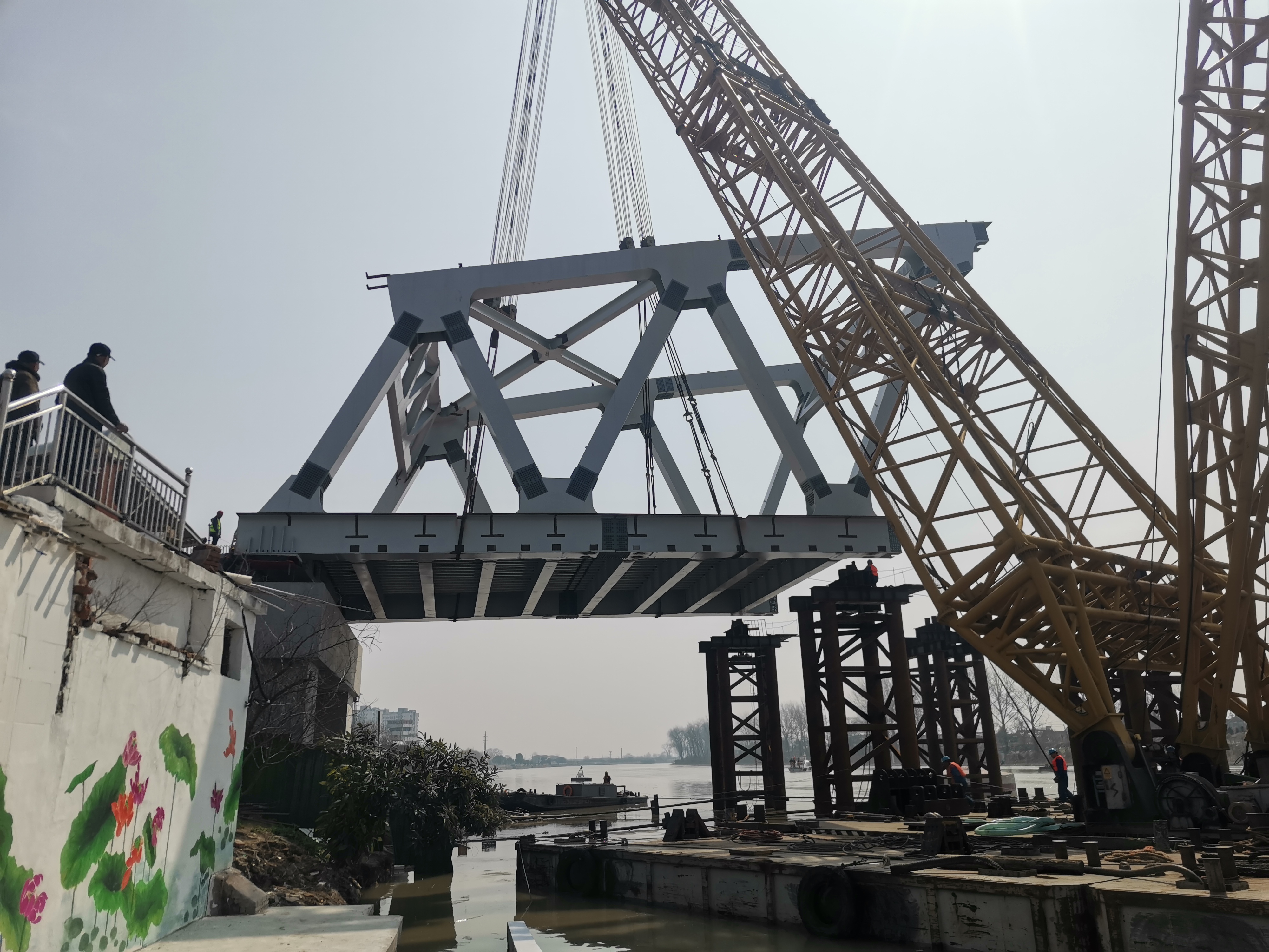 3月3日,京杭大运河两岸人头攒动,在全体参建人员的奋战拼搏下,由江苏交工承建的苏北运河最大跨度拱形钢桁架桥梁——扬州宝应运河大桥主跨135米钢桁梁首节成功架设,标志着该项目进入钢桁梁吊装阶段,主跨贯通胜利在望。