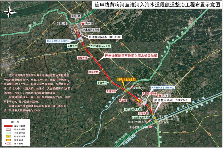 连申线黄响河至淮河入海水道段航道整治工程全长33.95公里,概算总投资40.21亿元。作为我省干线航道建设“拨改投”试点项目中投资额度较大、项目类型丰富的标志性项目,其建设内容主要包括航道工程、船闸工程、桥梁工程、地涵工程。该工程的实施,将有力打破盐城南北向水运主通道通航“瓶颈”,实现连申线与淮河入海水道二期配套通航工程“并线段”全线贯通,完善盐城港“一港四区”高等级内联航道网络,助力地方基础设施能级提升。