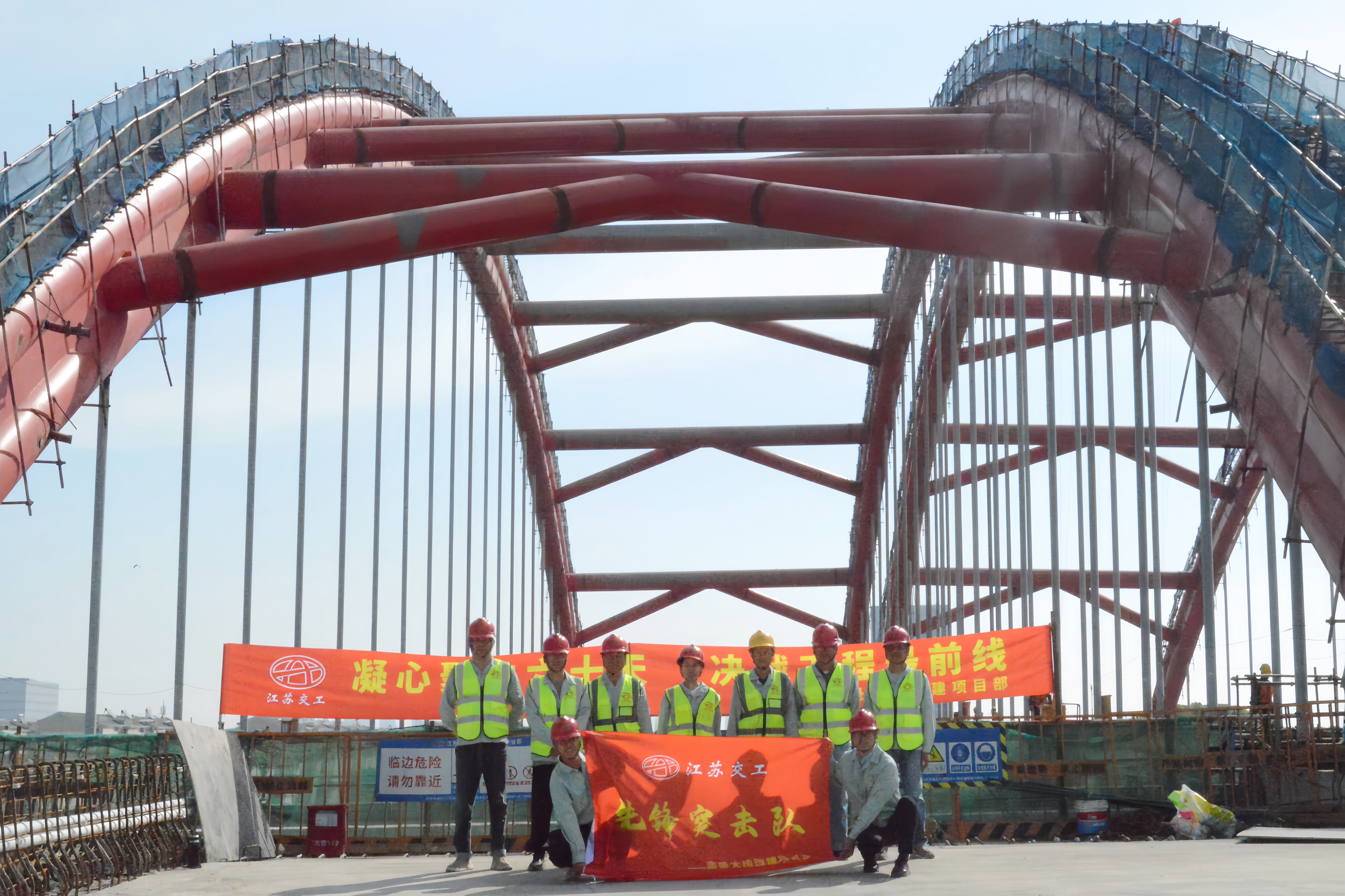 随着左幅系杆拱最后一片中横梁平稳落下,该项目朝着年中通车的既定目标又迈进了坚实一步。接下来,项目部将全面进入冲刺阶段,在确保安全、质量的前提下,凝心聚力抢工期,昼夜奋战保目标,完美打赢这场收官战。