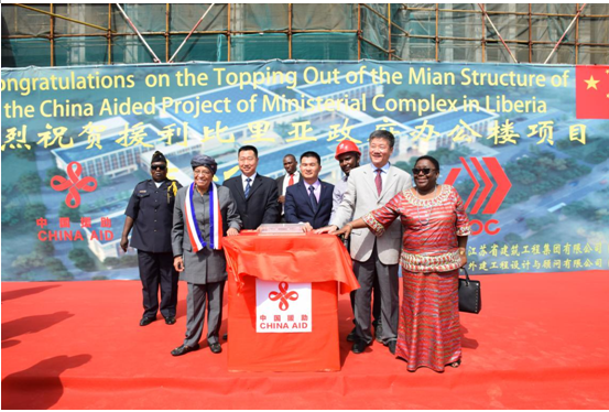 利比里亚总统出席援利政府办公楼封顶仪式
