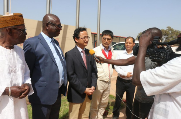 张大使现场接受冈国家广播电视台采访时表示,援冈国际会议中心项目是中冈复交以来首个重大双边合作项目,开工半年以来,项目建设扎实推进,中方支持两国团队按照工程计划进一步紧密合作,克服困难,确保按时、高效、高质量完成这一重要工程。