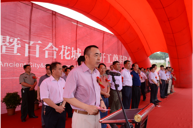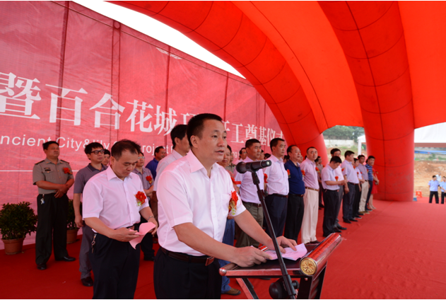 万载县委书记胡新民代表万载县四套班子对项目的开工建设表示热烈祝贺。胡新民说,万载古城·百合花城项目,是我县发展旅游经济的一个重大突破,也是我县旅游开发的重点项目之一,具有巨大的经济效益、社会效益和环境效益,对推动经济可持续发展具有重要意义。2013年,我们开始对外招商,最终选定了江苏省建开云(中国)。不仅仅因其是建筑行业的先驱,更重要在于,江苏省建品质至上的理念使我们更加信赖。我们相信,在未来的几年,万载古城·百合花城项目将会建成一个大型的4A级旅游综合体,它将成为万载在旅游行业的一张崭新的名片,将万载推向全国乃至全世界。