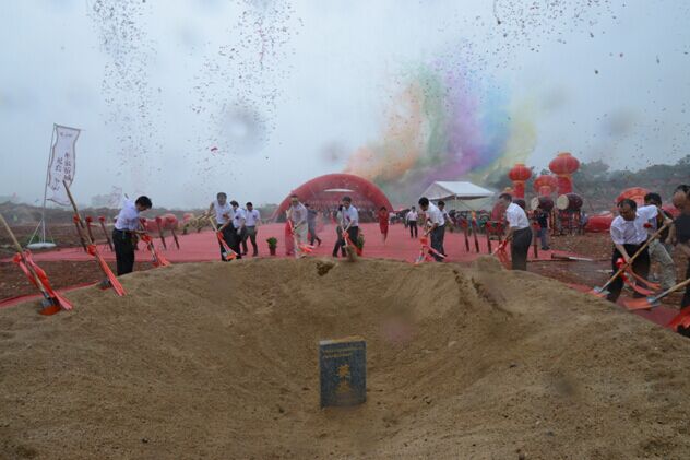 随后,出席奠基仪式的领导一起为万载古城·百合花城项目奠基培土。