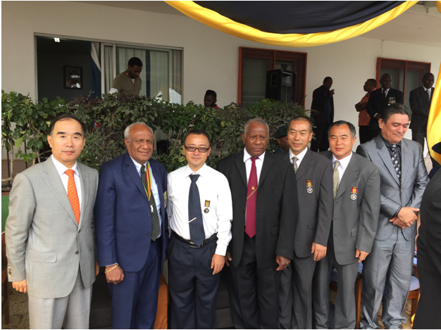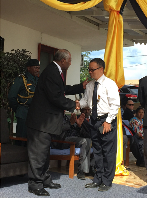 朗斯代尔总统向袁刚颁发“瓦努阿图独立勋章”