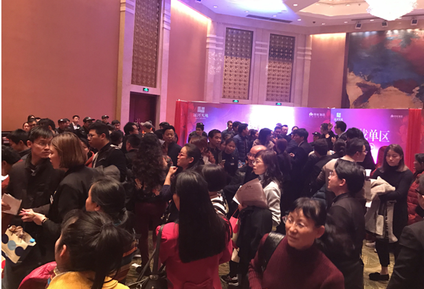 中午11:00不到,开盘盛典还未开始,众多购房者便早早地到达现场。随着客户源源不断的到来,签到处也排起了长队,购房客户也在工作人员的引导下有序进入会场,等待选房。